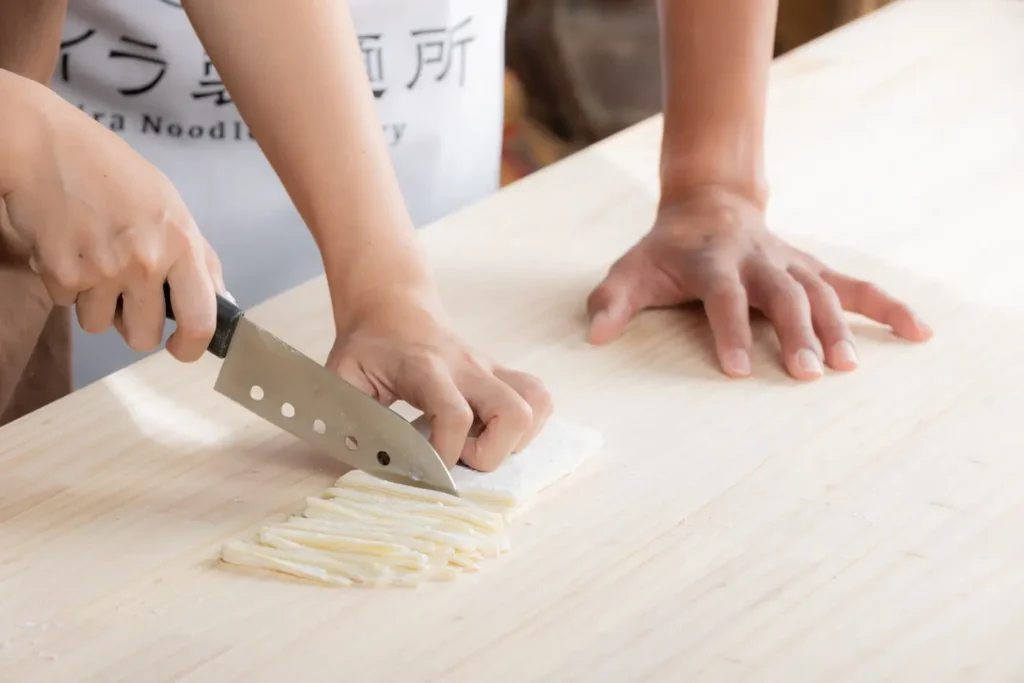タイラ製麺所では、製麺所直営ならではの沖縄そばを味わえるだけでなく、沖縄そば作り体験もご用意しています。